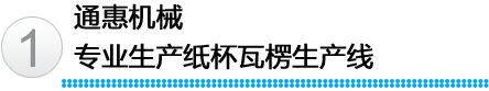 江陰市通惠機(jī)械有限公司,專(zhuān)業(yè)生產(chǎn)紙杯瓦楞生產(chǎn)線,研發(fā)的中空紙杯專(zhuān)用瓦楞杯生產(chǎn)線,S楞、菱形、圓形、點(diǎn)狀形瓦楞紙杯專(zhuān)用生產(chǎn)線。同時(shí),還生產(chǎn)單面瓦楞紙板生產(chǎn)線。